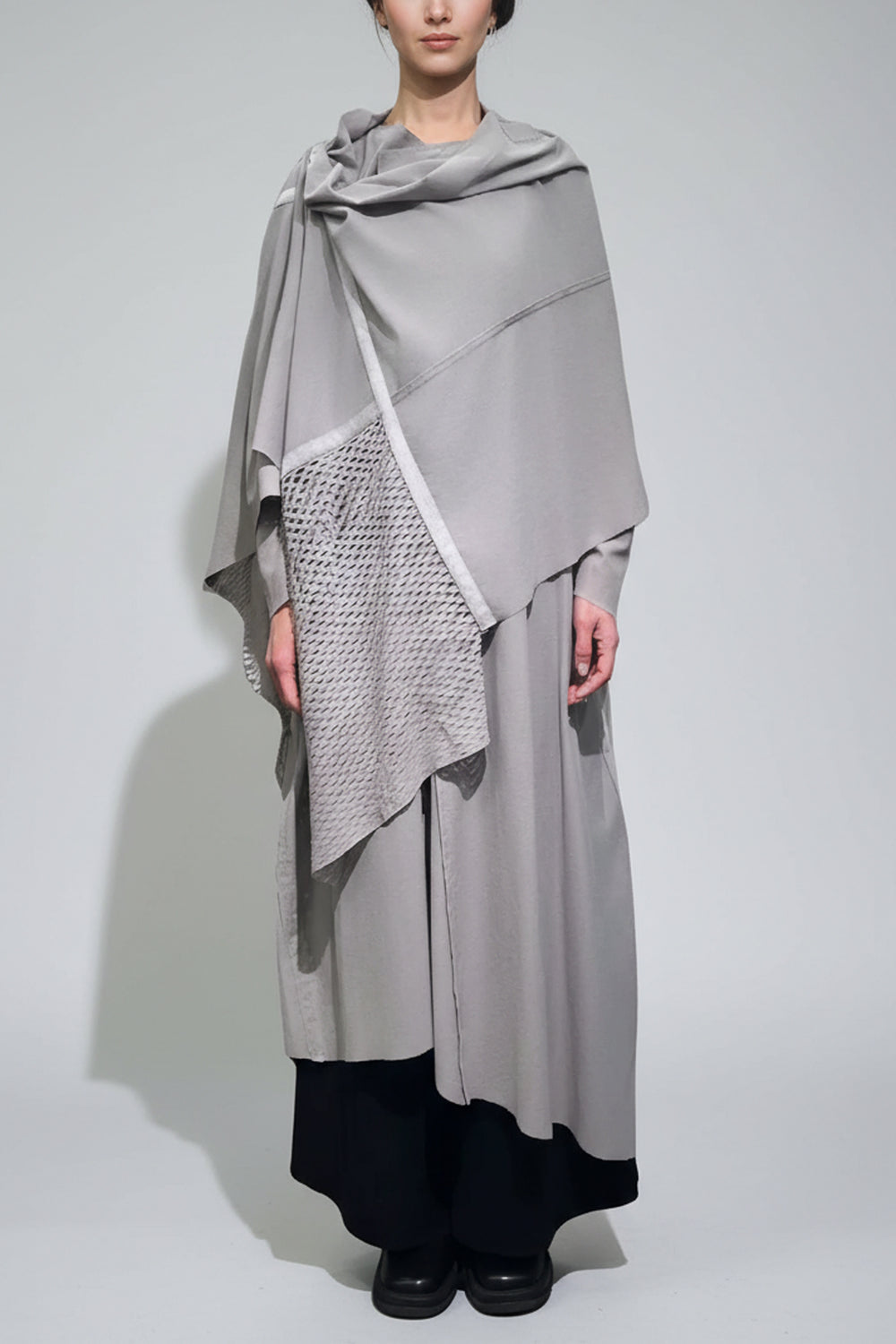 トップスのようにスナップをとめて着る。ストールとして巻く。垂らす。シンプルな服に一枚纏うだけで、いつもと違う私に