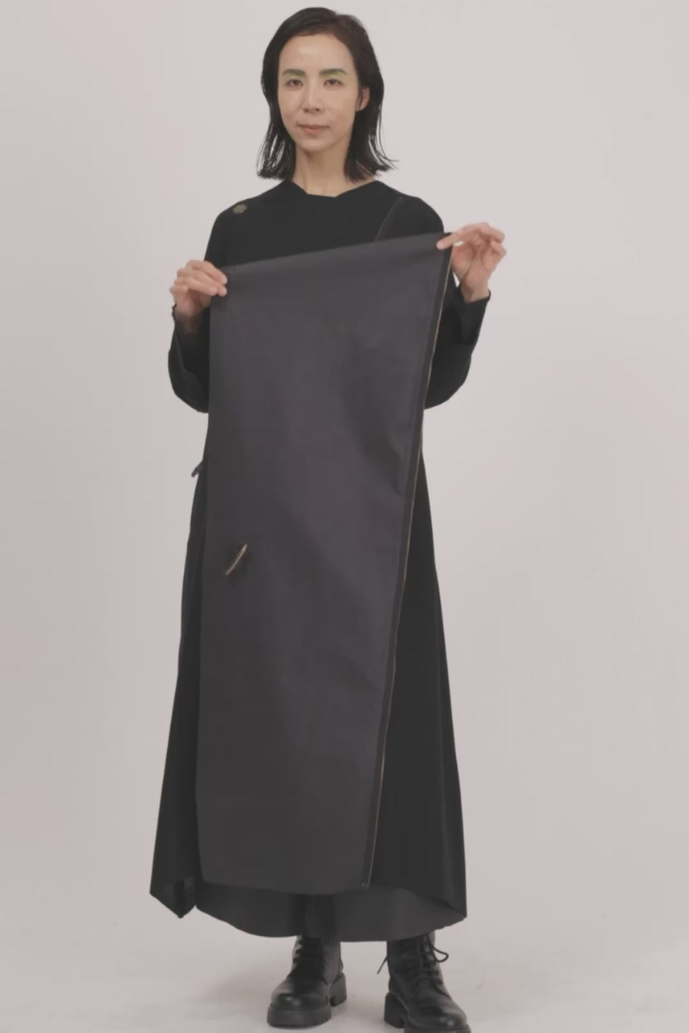 パーツで遊べたり、カタチが変わったり、軽く伸びる素材のミハイルギニスアオヤマのワンピースは旅行にも便利。