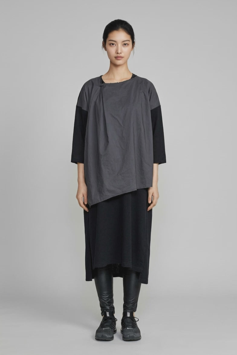 気軽に着ることができるハイネックのワンピース。洗濯可能でたたむとA4サイズでペタンコに。旅行にもおススメです。