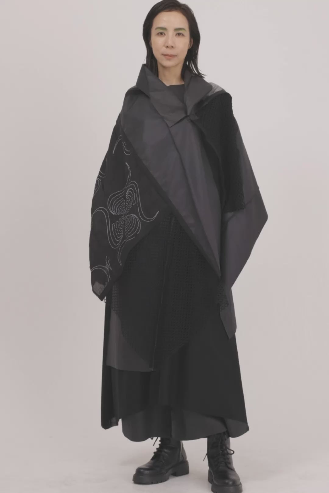 HYBRID PONCHO[WOOL × LEATHER]HANDPAINTED
