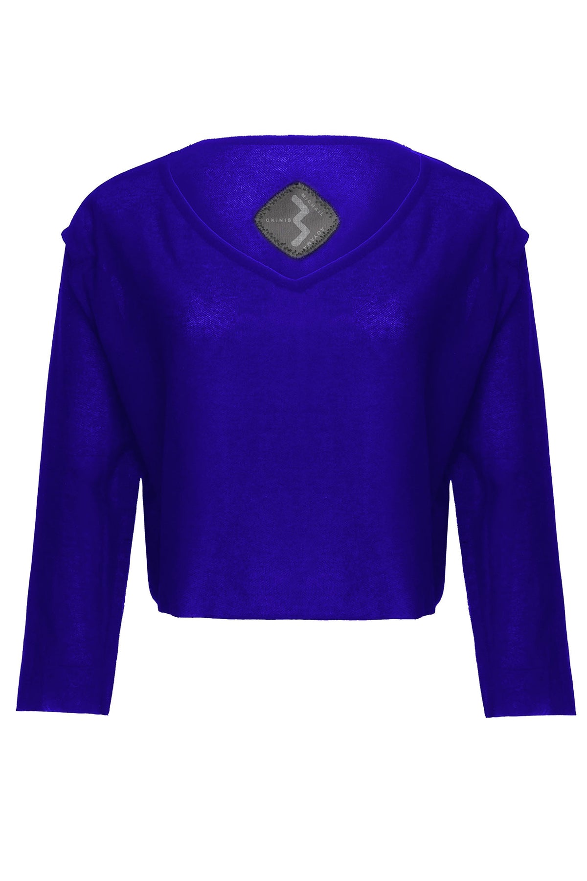 バルーンワンピース(袖なし)の下に着ると長袖としても着ることができるインナー的Tシャツ。1枚でも着ることができます。首、袖まわりのカットオフのデザインが新鮮なミハイルギニスアオヤマのオリジナルTシャツです。